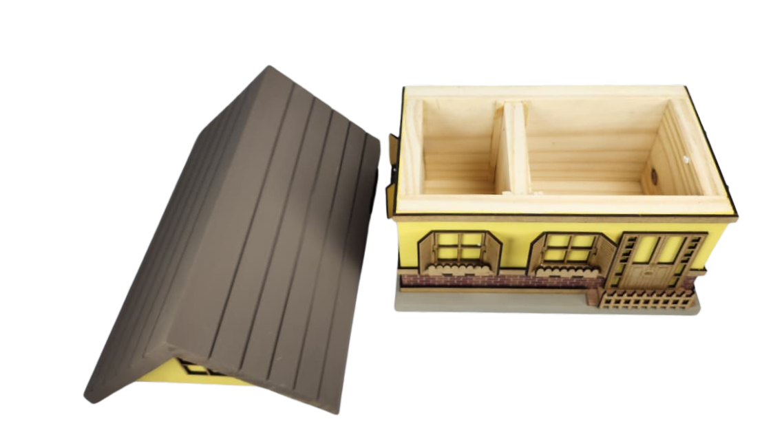- Acabamento de alto padrão: Produzida artesanalmente em madeira Pinus com telhado em Cedrinho, resultando em um visual sofisticado, resistente e harmonioso.